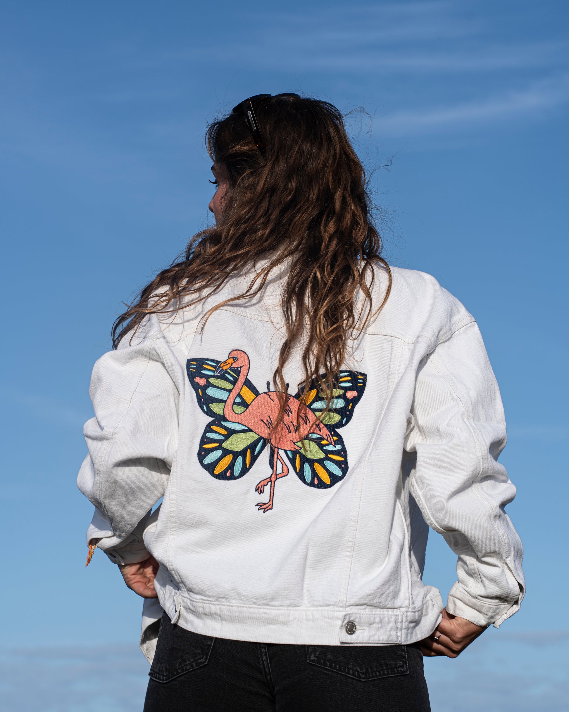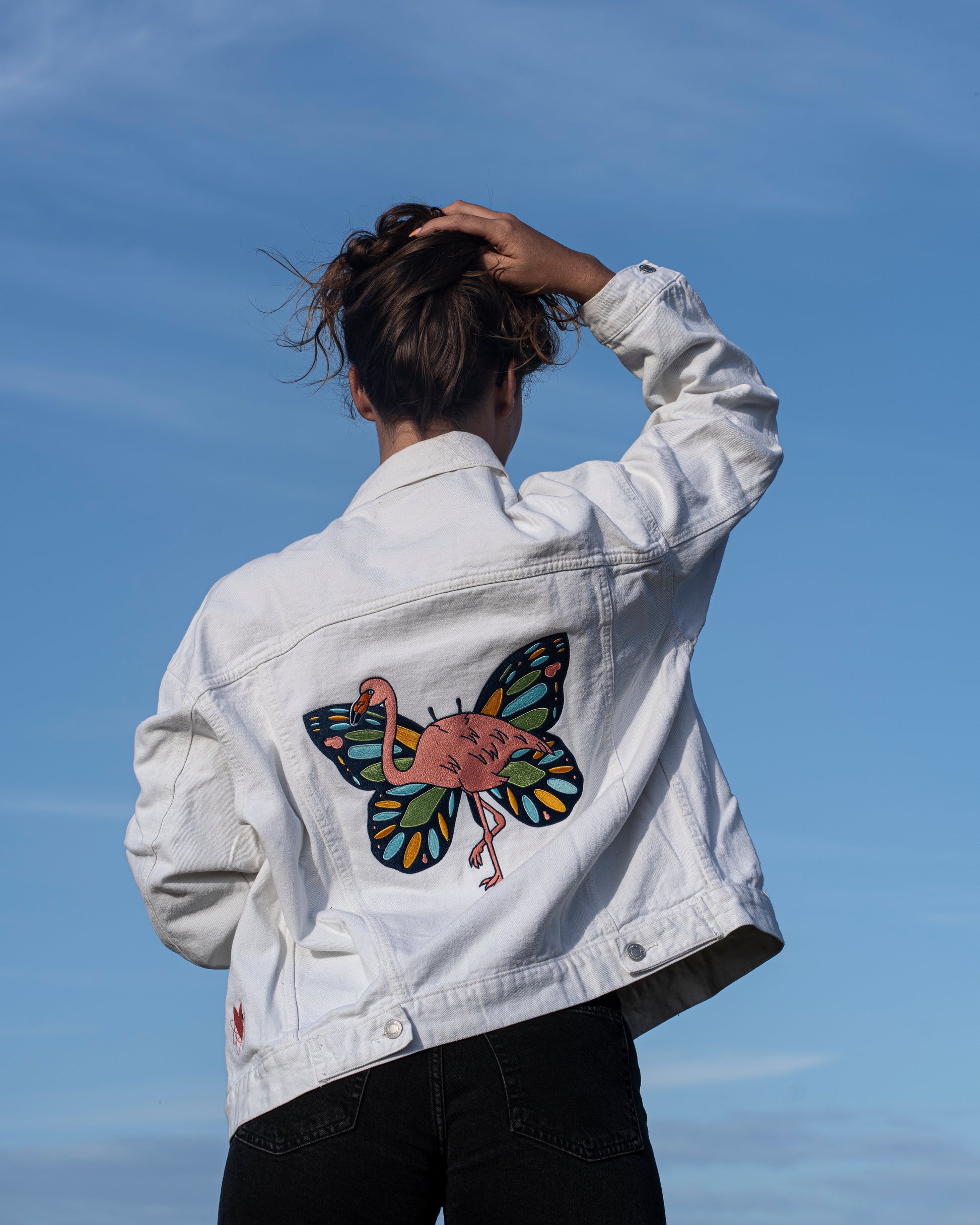 Le flamant rose et le papillon symbolisent tous deux la transformation et la résilience, le papillon se transforme en passant de l’état de chenille à papillon, c’est son passage à l’âge adulte, sa forme finale. Selon son espèce le papillon peut rester dans sa chrysalide pendant des semaines voir des mois comme le Monarque.